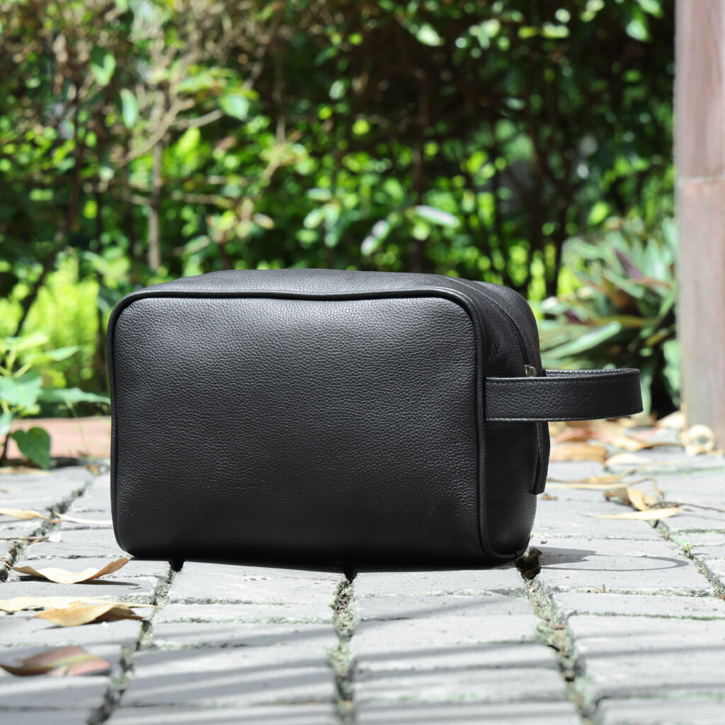 Premium Tan Leather Toiletry Bag for Men Travel Dopp Kit