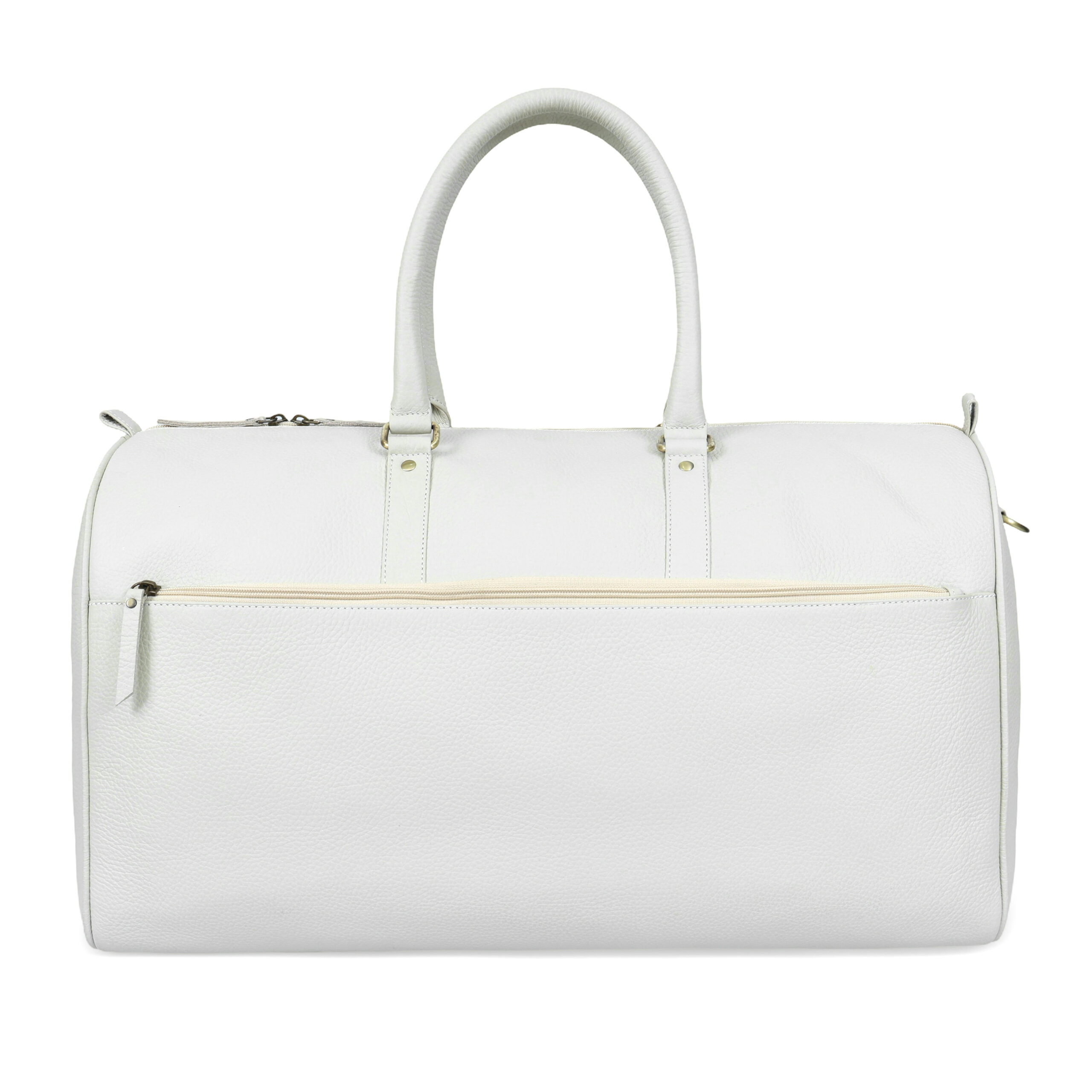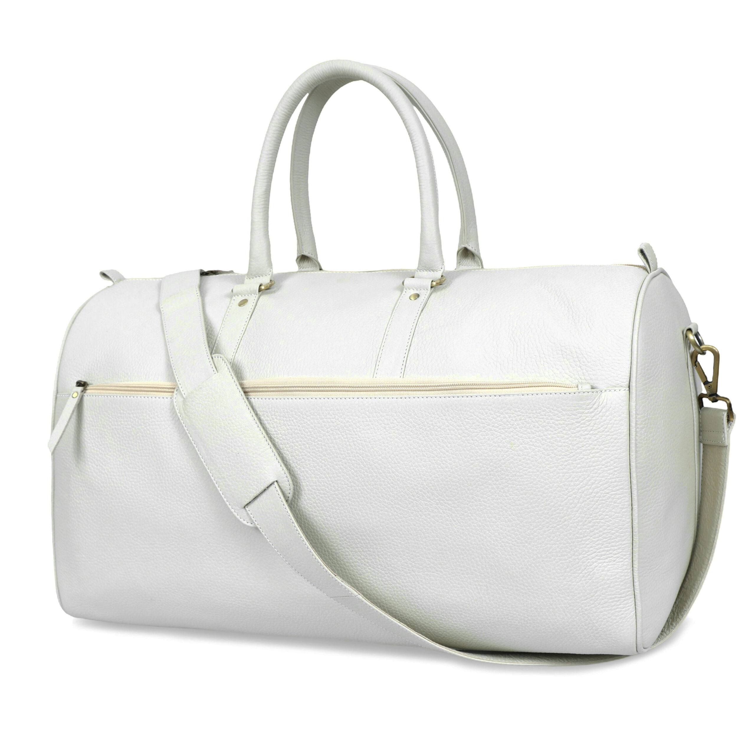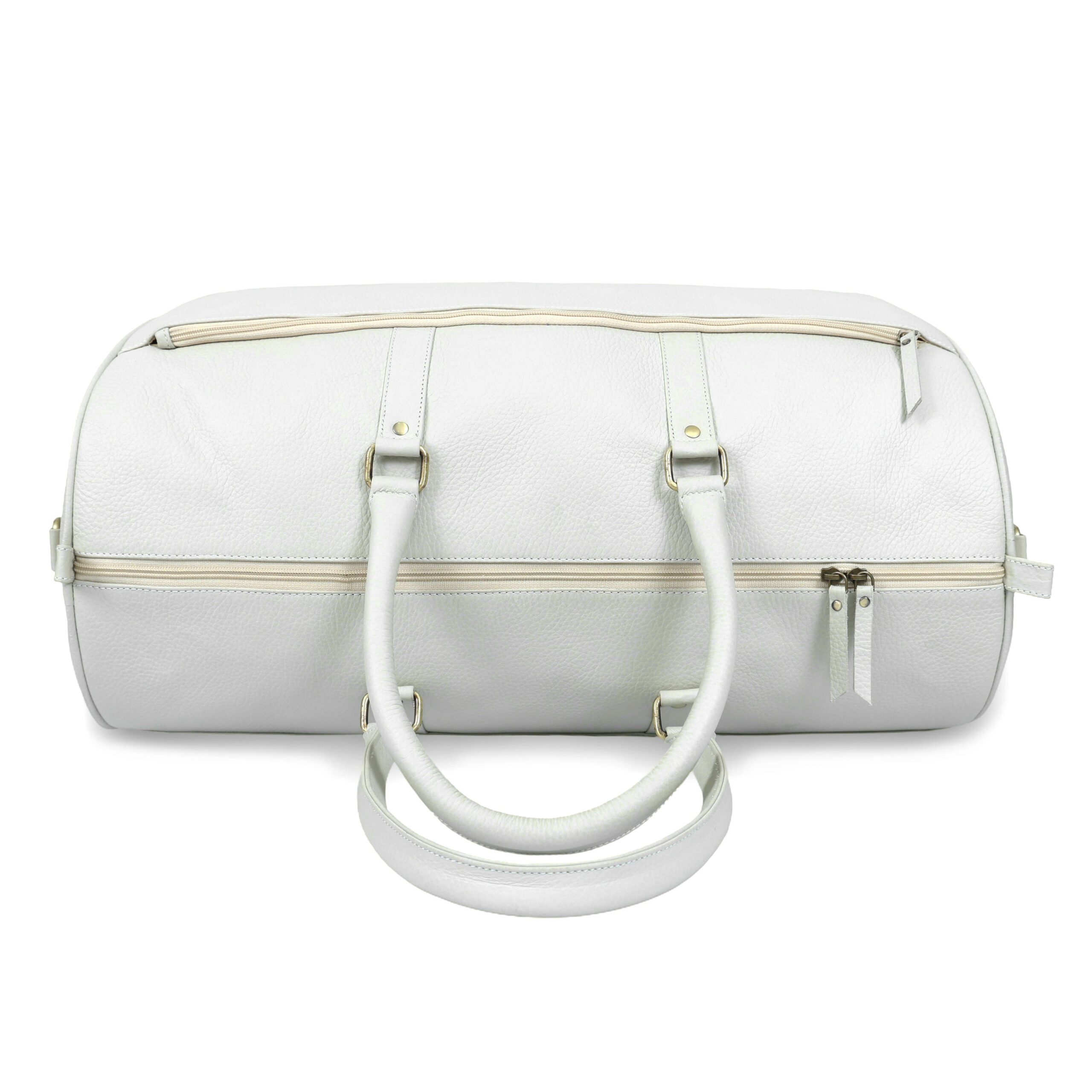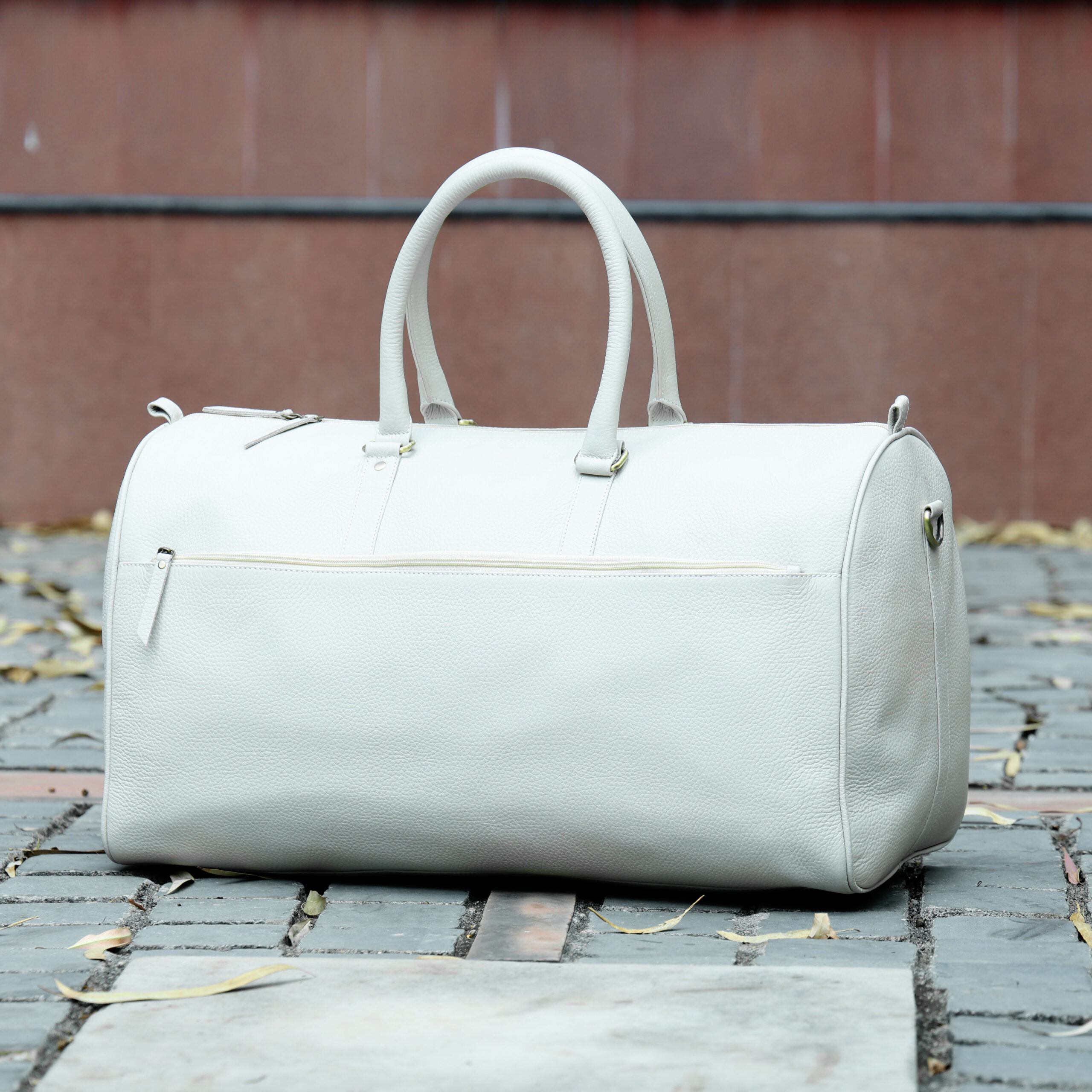 Travel in style with our Luxury White Leather Weekender Bag, handcrafted from premium leather for unmatched elegance and durability. This designer travel duffel bag is the perfect companion for weekend getaways, business trips, or stylish everyday use.